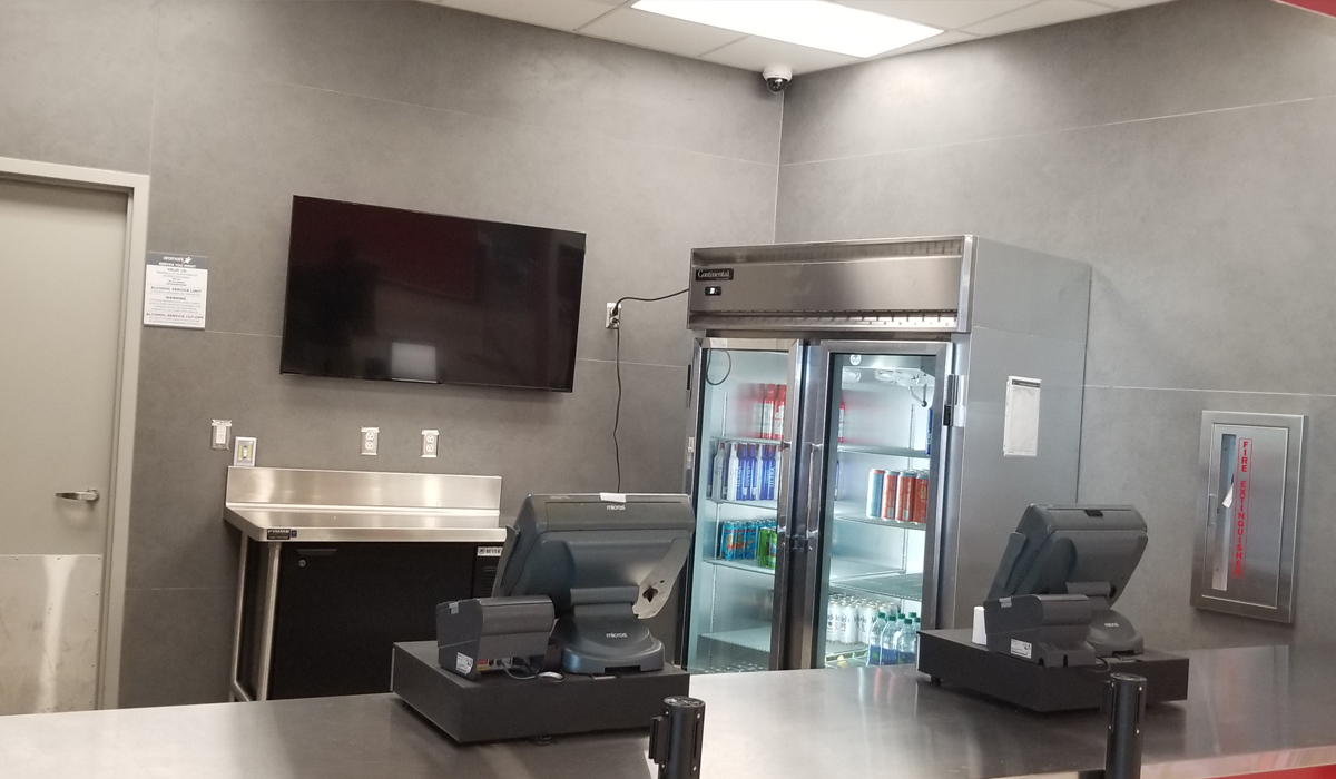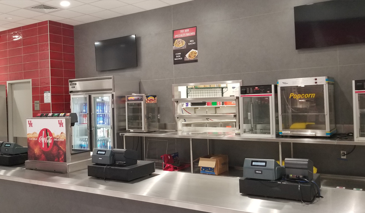 The four new concession areas required surfacing that complemented the University athletics’ style and would be durable and impact resistant. The design team chose Crossville Porcelain Tile Panels by Laminam for the wall space surrounding the service counters, as well as behind the food supply areas on the back walls. Crossville’s Oxide collection in the Grigio colorway provided a subtle, metallic glimmer effect interpreted in a stylish, industrial look that brightens the overall concession space and blends perfectly with the Cougars’ team colors of gray and red. The powerful porcelain body of these tile panels ensures the surfaces will perform with strength long-term.