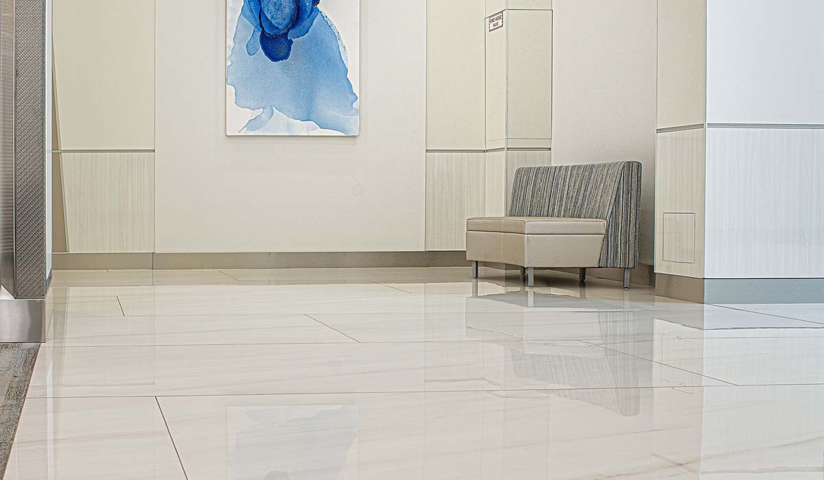 Welcoming tenants and visitors through the new Bank of America Plaza lobby, Crossville’s porcelain tile panels for the flooring will easily withstand the daily traffic and continue to showcase modern style for years to come.