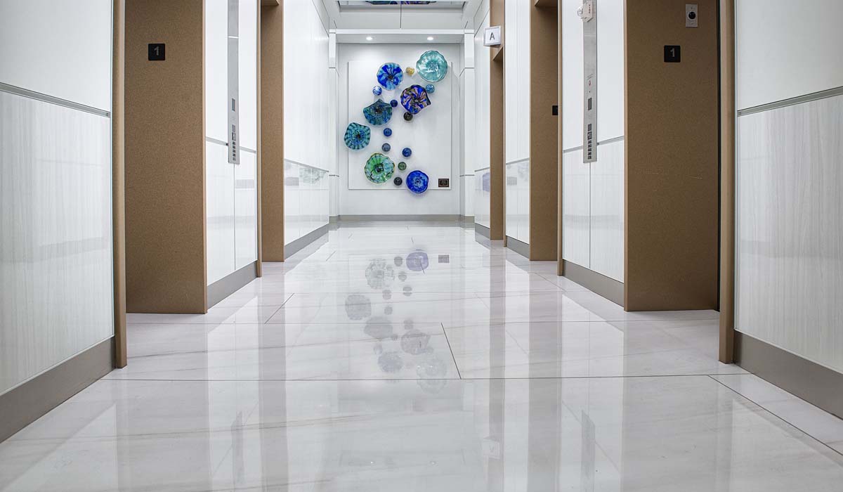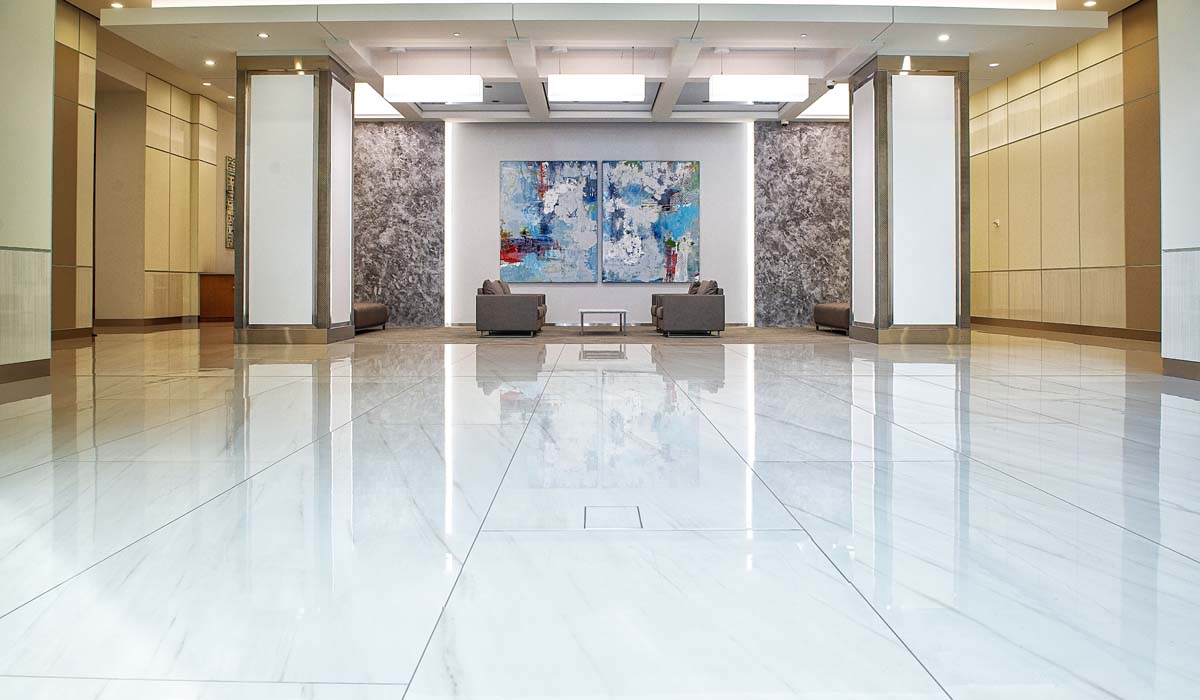 To answer this surge of growth, the property owners of the Bank of America Plaza at Las Olas City Centre planned a renovation to the tower lobby. The update ensured modern amenities for tenants and visitors. Offering a financial center and ATM on the ground floor, the Plaza lobby sees high traffic for personal- and business-related transactions. Built in 2002, the property encompasses over 408,000 square feet in the 23-story tower. Aside from Bank of America, some of the other tenants include Greenberg Traurig, PricewaterhouseCoopers and Patriot National Insurance. When working on the lobby renovation plan, keeping disruptions to a minimum for all tenants was a priority.
