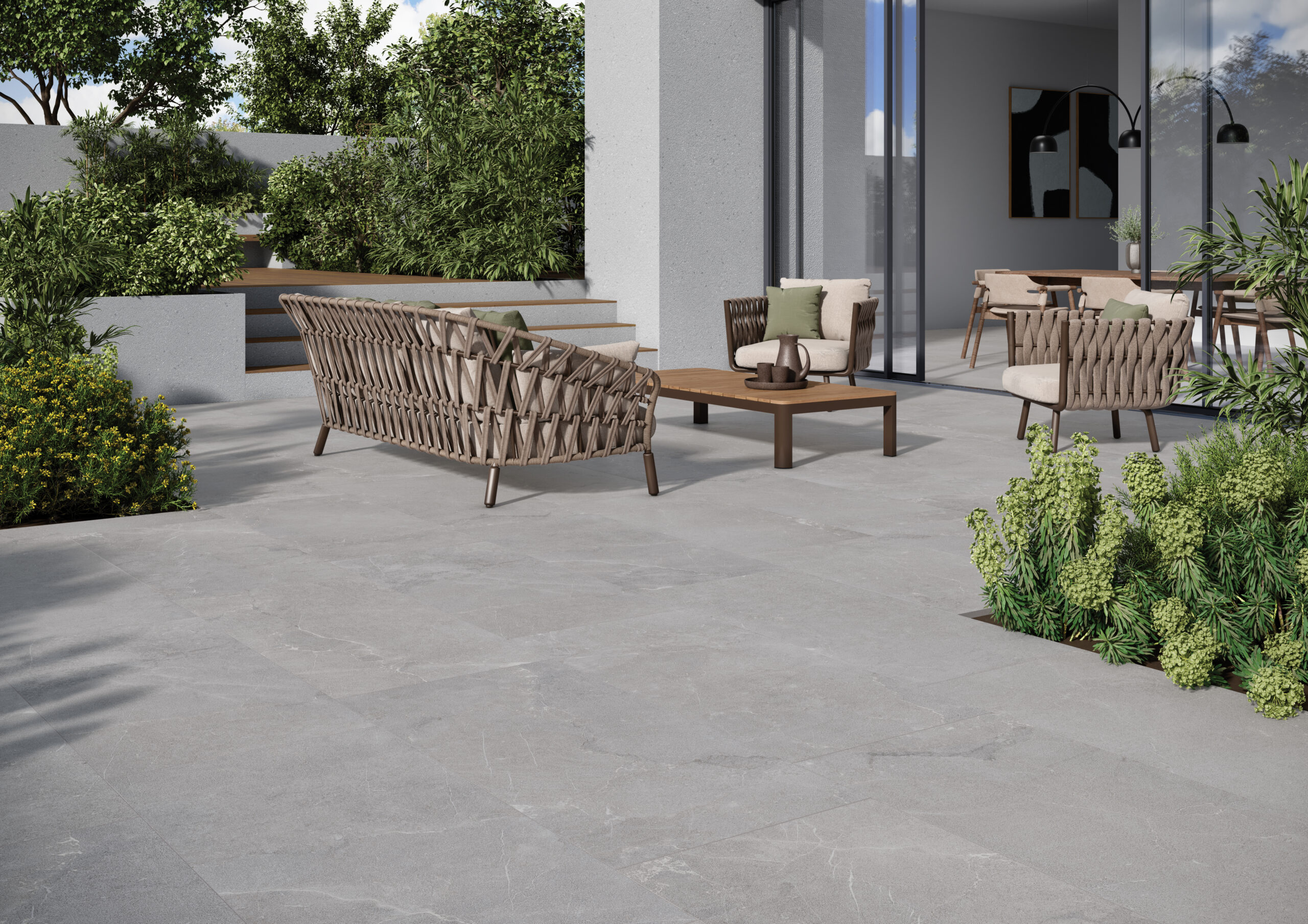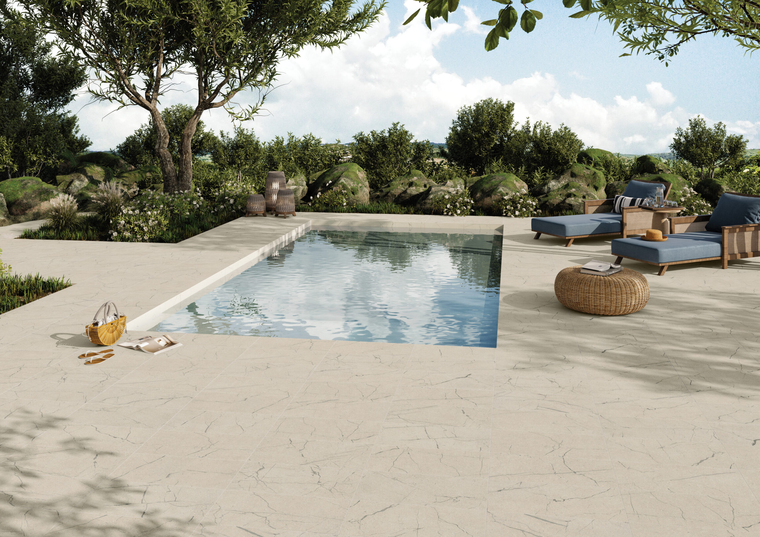 Crafted to beautifully endure, this collection features six luxurious natural stone looks that exude quiet elegance, providing the perfect foundation for family dinners, cocktail soirees, or pool-side parties for the entire neighborhood. With Sociale, you can book your social calendar and still find time to relax, thanks to the easy maintenance and durability of porcelain. A connection with Nature has never been easier or as environmentally responsible. Made in the USA from abundant, natural raw materials, Sociale offers an eco-conscious alternative that is decidedly livable and infinitely elegant.