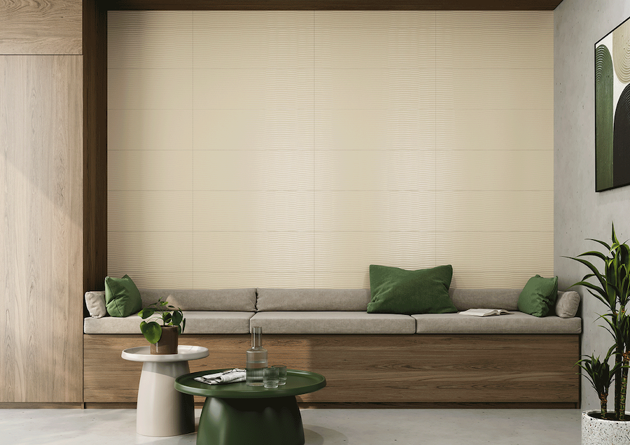 Textile-inspired Ready to Wear porcelain tile is patterned with classic warp, weft, texture, and tone to bring touchable appeal to floors and walls.