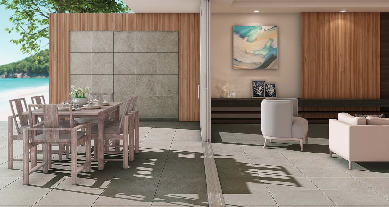 Portugal’s palette of six colors represents a mix of warm and cool neutrals including Velho White, Grand Rosé, Venho Verde, Tinta Negra, Harvest Tawny, and Madiera Reserve. The interior unpolished and exterior finishes invite installations with seamless visual flow from indoors to out. Engineered to an average minimum 0.60 DCOF and R11 classified, the exterior tiles provide the superior technical performance required for outside spaces.