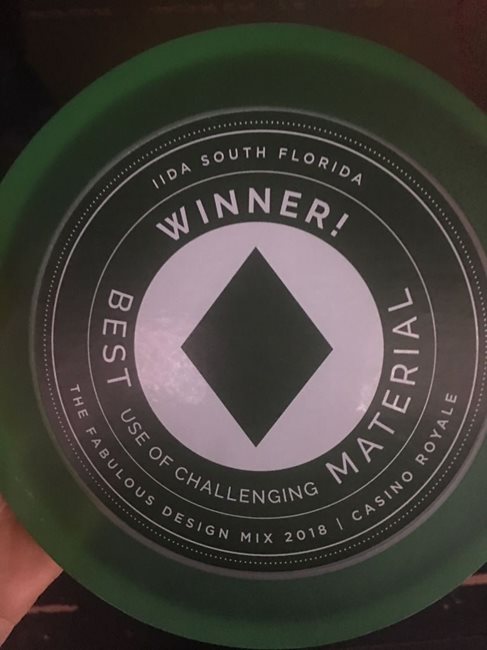 The designing minds at ID & Design did an amazing job using our porcelain tile and glass mosaics to capture the high-rolling spirit of Casino Royale and winning the award for “Best Use of a Challenging Material!”