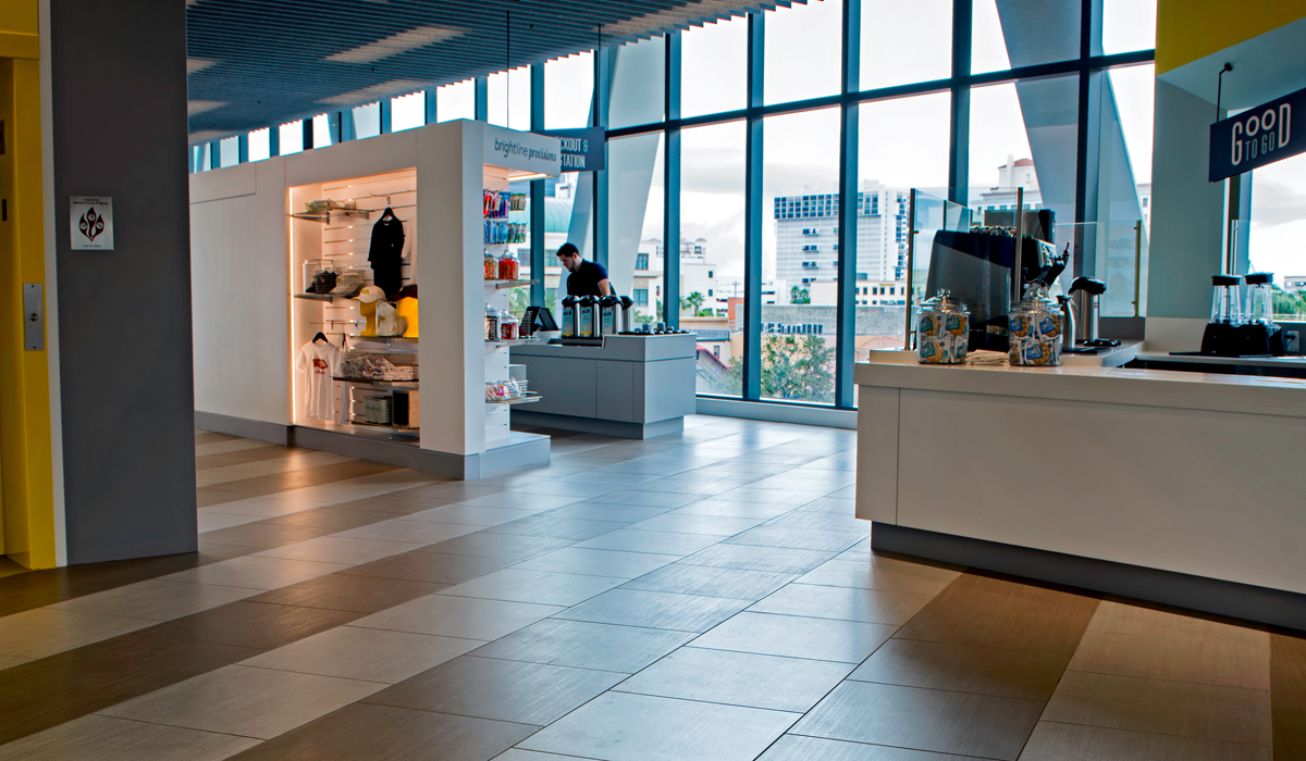 Crossville’s Shades  porcelain tile collection in 24” x 24” was selected because of the line’s sleek, urban look and superior performance.To advance the already high performance of the floor tiles, the specification team opted for Crossville’s proprietary Cross-Sheen® finish for the installation