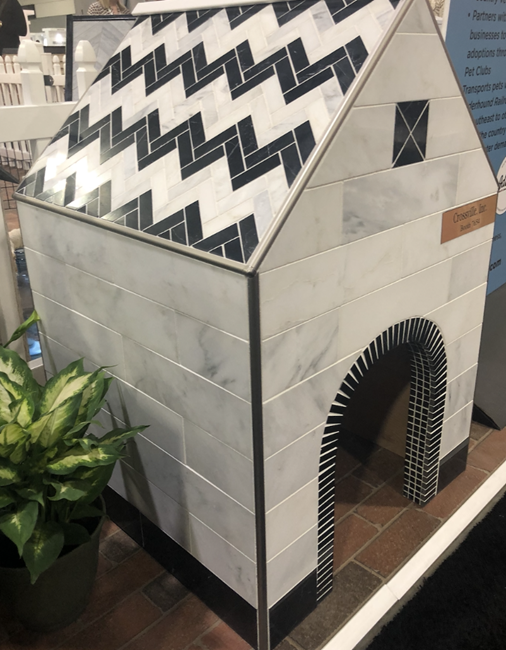 We enjoy the opportunity to contribute a tiled doghouse as part of TCNA’s pavilion at the show. This year, Banko Design in Atlanta envisioned the creation of this pooch palace that ties in beautifully with our show theme of ‘modern meets classic’ in contrasting black and white tile.