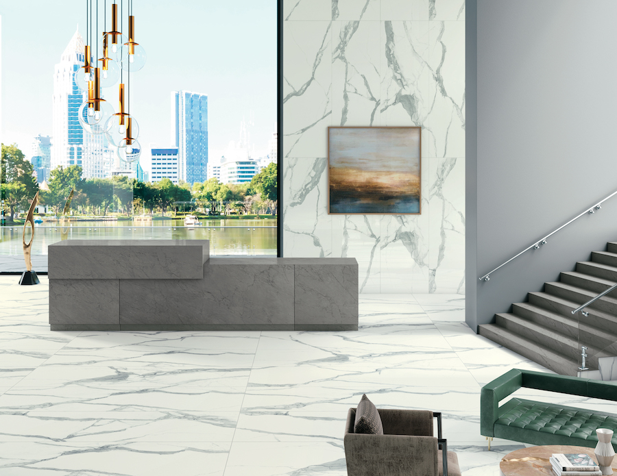 However, the current preference in the market for truly dramatic veining reflects here-and-now fashion that’s more audacious and daring. Designers are drawn to the movement and intensity of veining at an epic scale, as it transforms sometimes mundane surfaces into feature-worthy focal points. Bold veins function like works of abstract art on the canvas of durable tile or stone. The looks are so grand that they can be ‘cast’ as the star within a space’s design, rather than just in a supporting role. Of course, we have nature to thank for the striking, ambitious style of bold veining, as the earth has yielded strongly striated materials for tens of thousands of years.