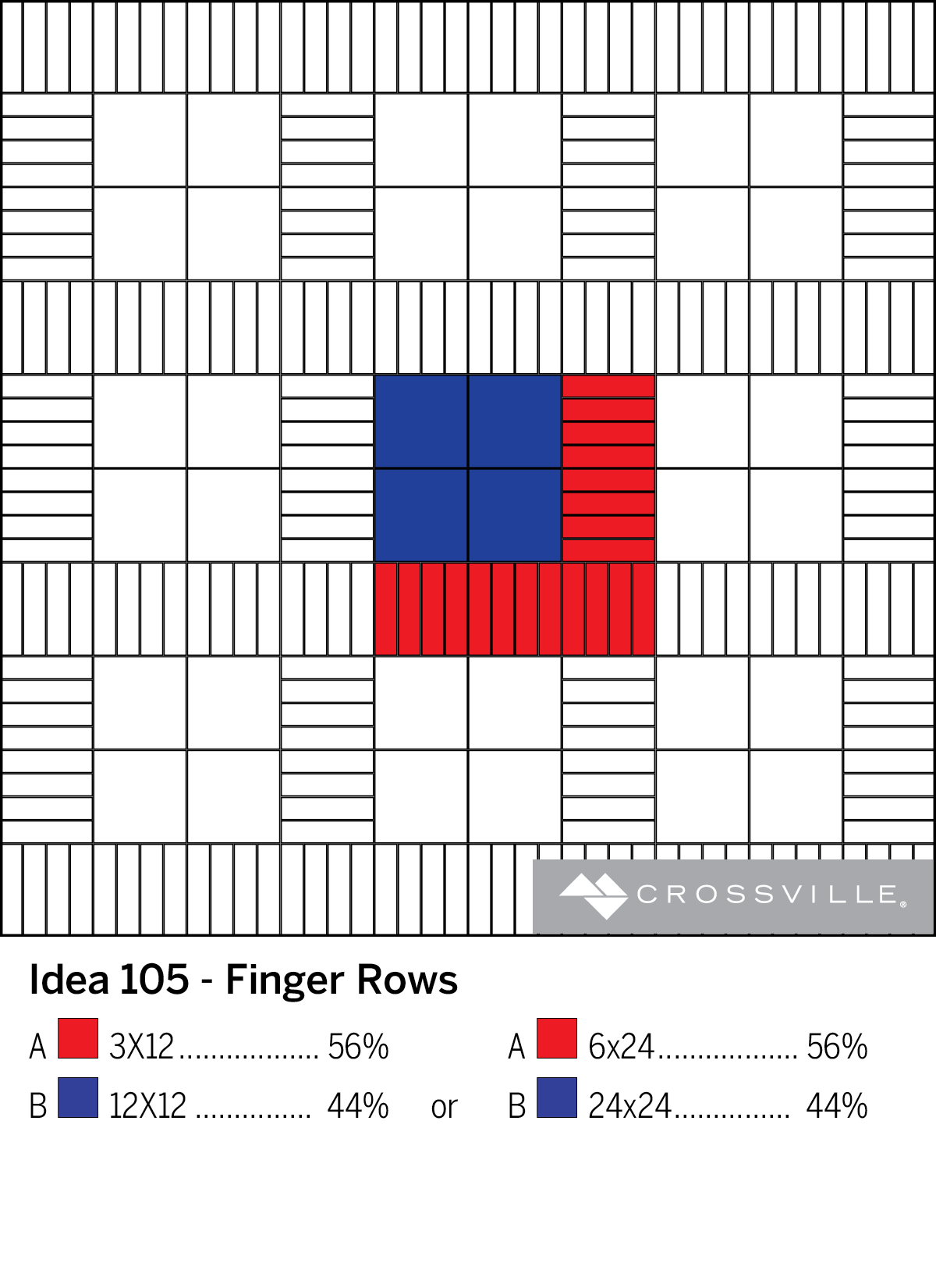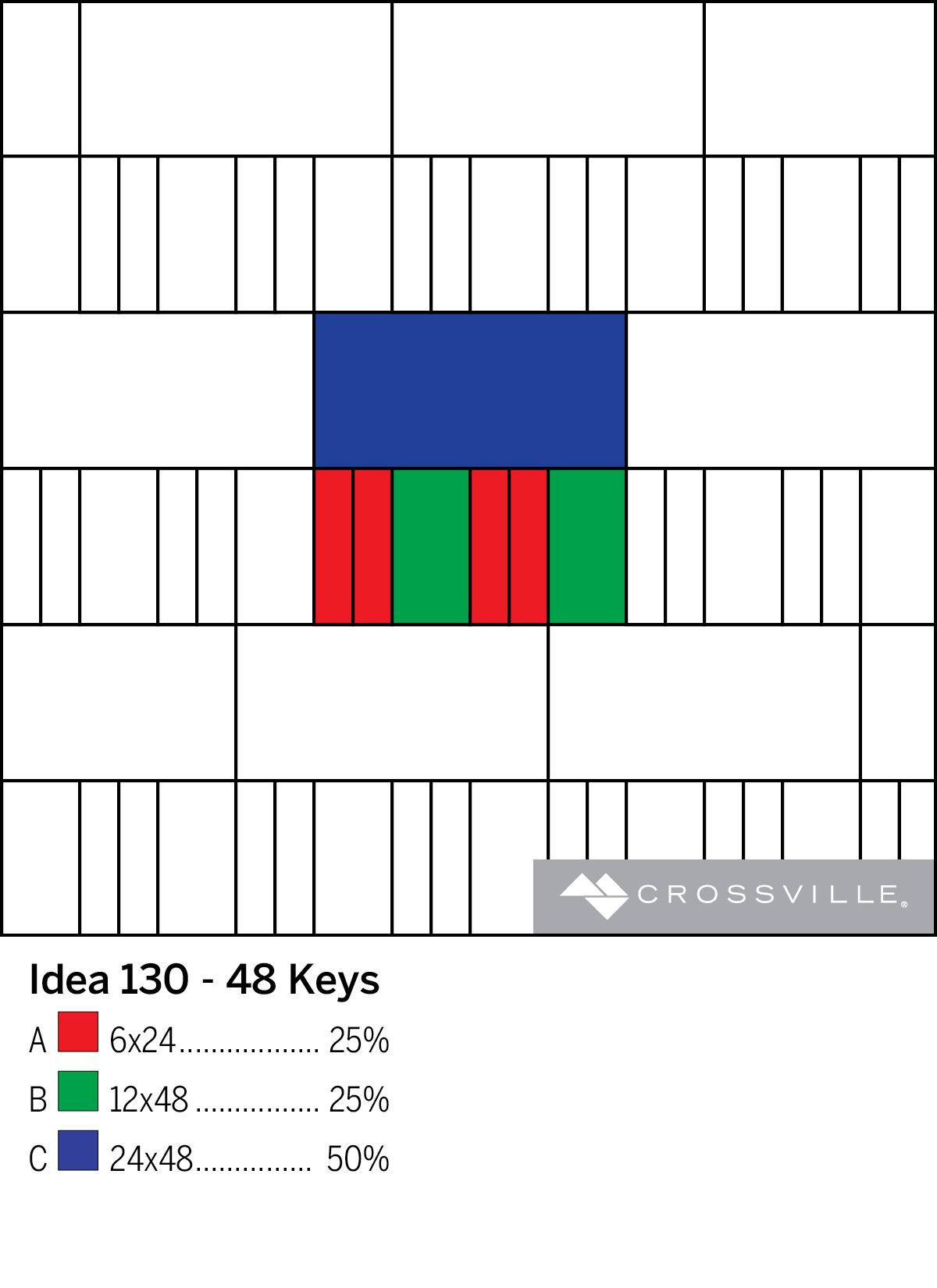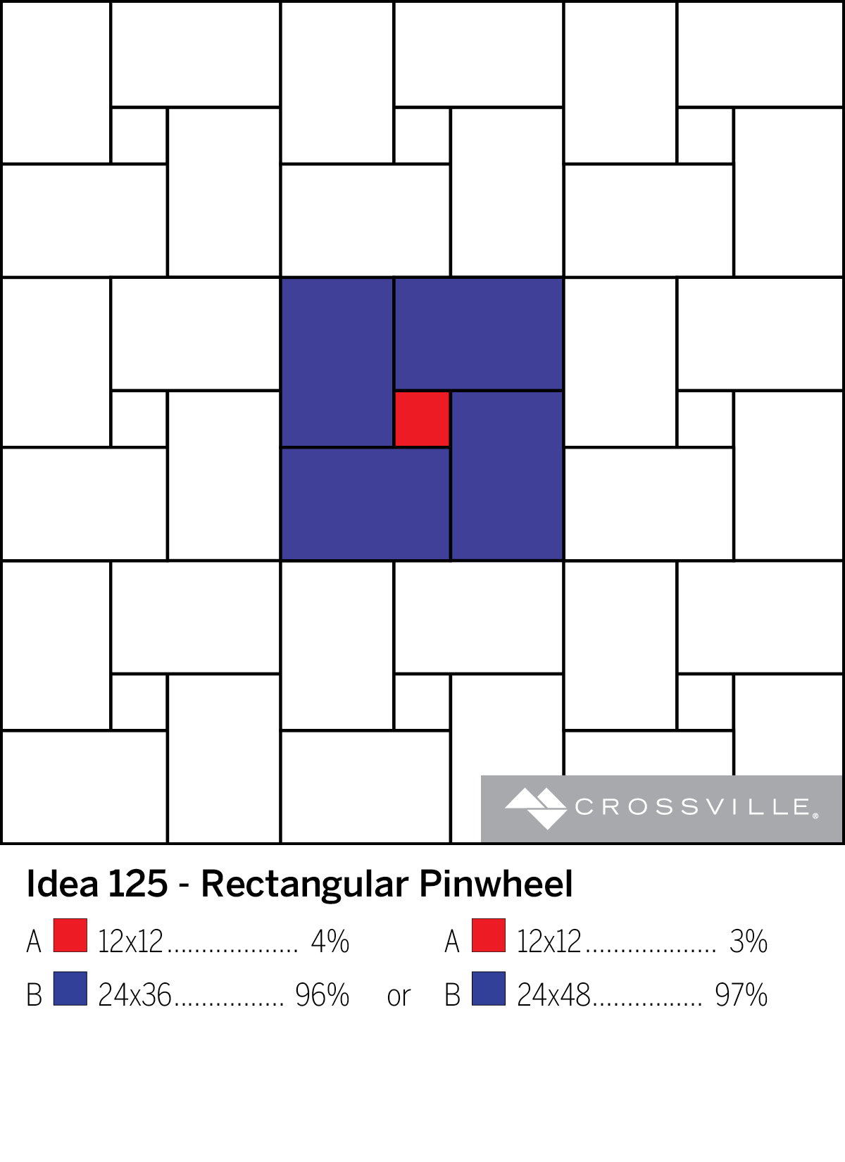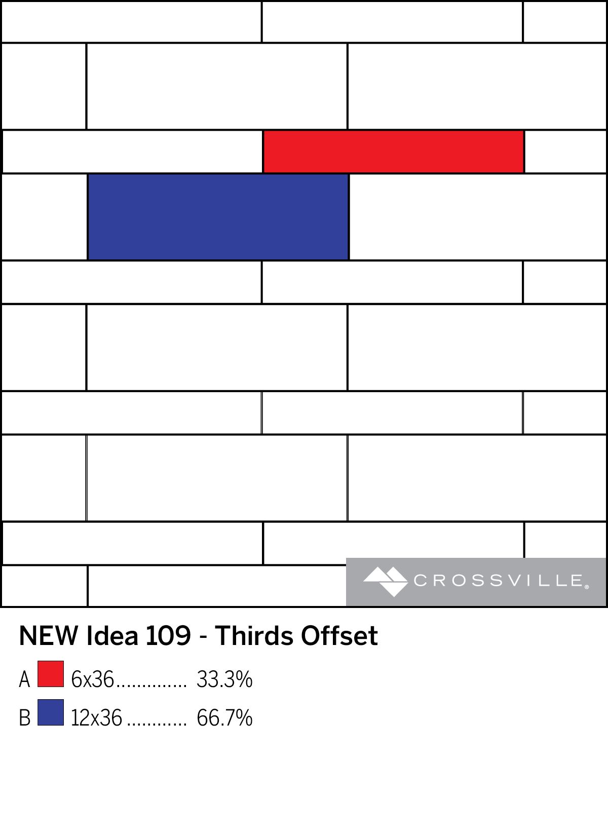 Please note, if an offset pattern is required for tiles 15 inches or longer, Crossville recommends an offset of no greater than 33%.