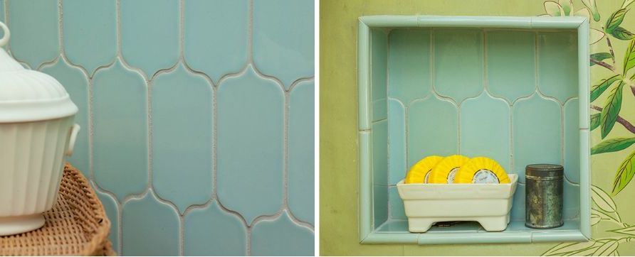 Handwritten wall tile captures the nuanced look of artisanal tile in a product of consistent, quality execution. Handwritten’s range of shapes and sizes, as well as its robust color palette, make the line versatile and fun to work with. The soft blue-green Par Avion colorway is perfect for a seaside- inspired color scheme.