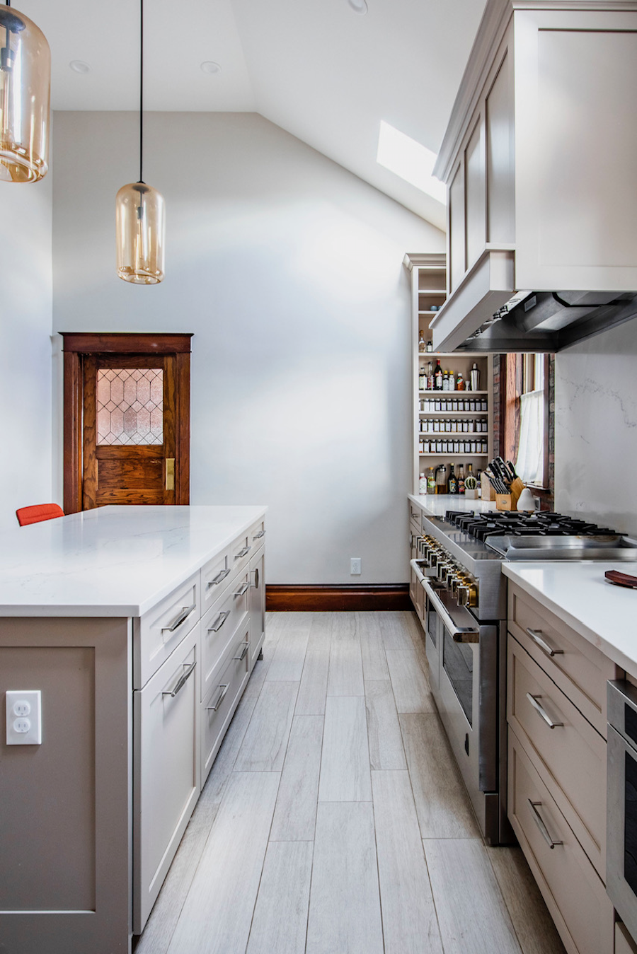Nest wood-look porcelain tile in Mindful Olive. Image courtesy of Diane Gordon design. Read the case study.