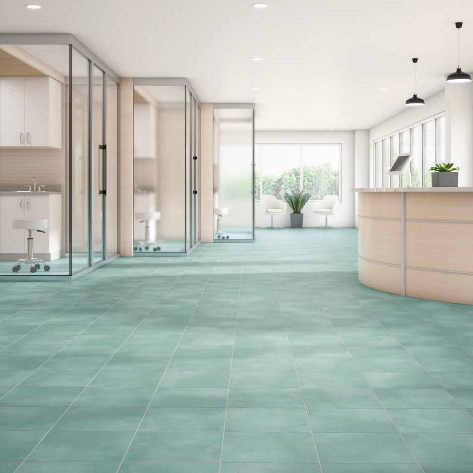 This trend is manifested through the use of colors and textures found in nature to create materials that mimic what can be found in the natural world. Tiles and other materials with natural greens bring a bit of nature to our increasingly virtual workspaces.