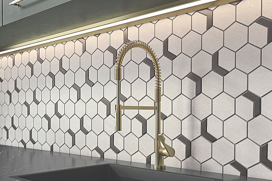 Hex shapes in tile design aren’t new; in the early 1900s, one-inch hex tiles were the go-to flooring choice for many bathrooms across America. The hex tiles could be all white, or surfaces could be tiled with complex patterns incorporating different colors. People with vintage homes often want a look that is in keeping with the home’s age. The classic one-inch hex tiles will do just that. But as with many classics, it’s modern twists on the old classic – such as larger formats, creative applications, and limitless colors and patterns that keep things fresh and current.