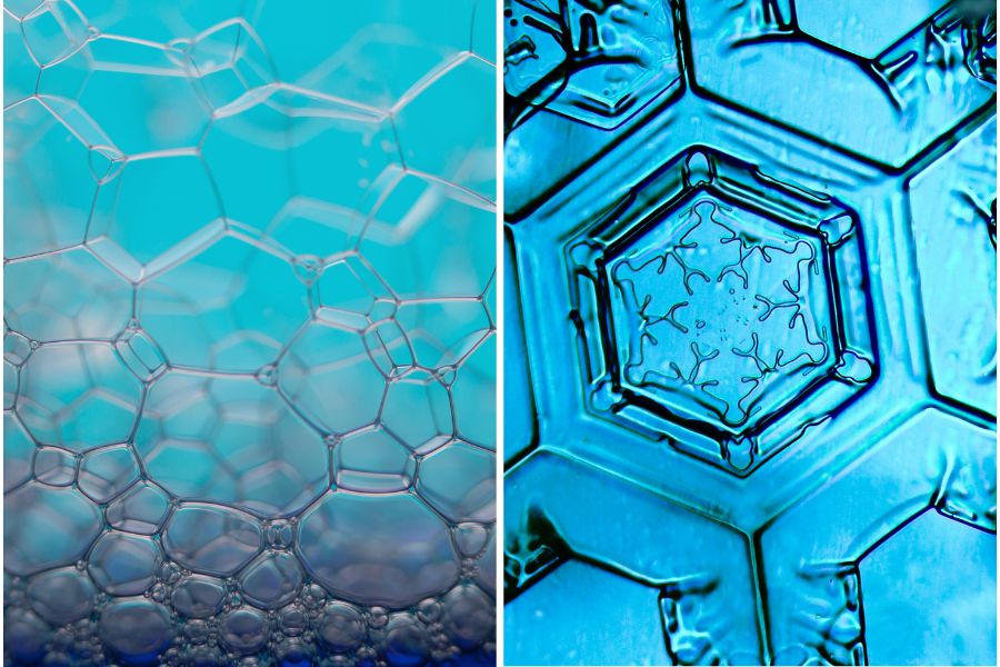 We often hear the hex referred to as “Nature’s most perfect shape.” Look closely, and you will find hexagons in nature over and over again. The honeycomb is perhaps one of the most obvious, but snowflakes, soap bubble rafts, turtle shells , and more all contain hexagonal shapes. Why are hexagons so prevalent in nature? It all boils down to efficiency. For example, the cells of a beehive honeycomb are hexagonal because the shape makes efficient use of space and building materials. Without taking a deep dive into mathematics, bees’ honeycombs made of interlocking hexagons will hold the most amount of honey while using the least amount of wax. Likewise, hexagons are an excellent surfacing solution because they cover the area better than any other shape!