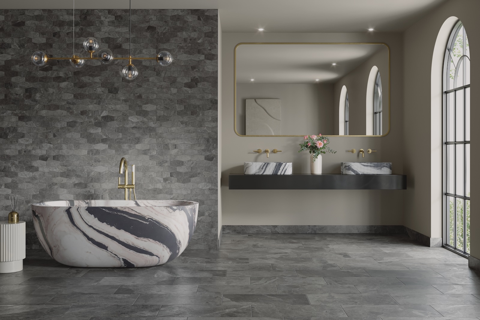 If you are designing a boutique hotel lounge, a luxury retail fitting area, or a residential primary bath, too much pattern repetition is the fastest way to kill the mood. With large formats and up to 48 unique faces in the 12×24, Cleve keeps the movement alive.