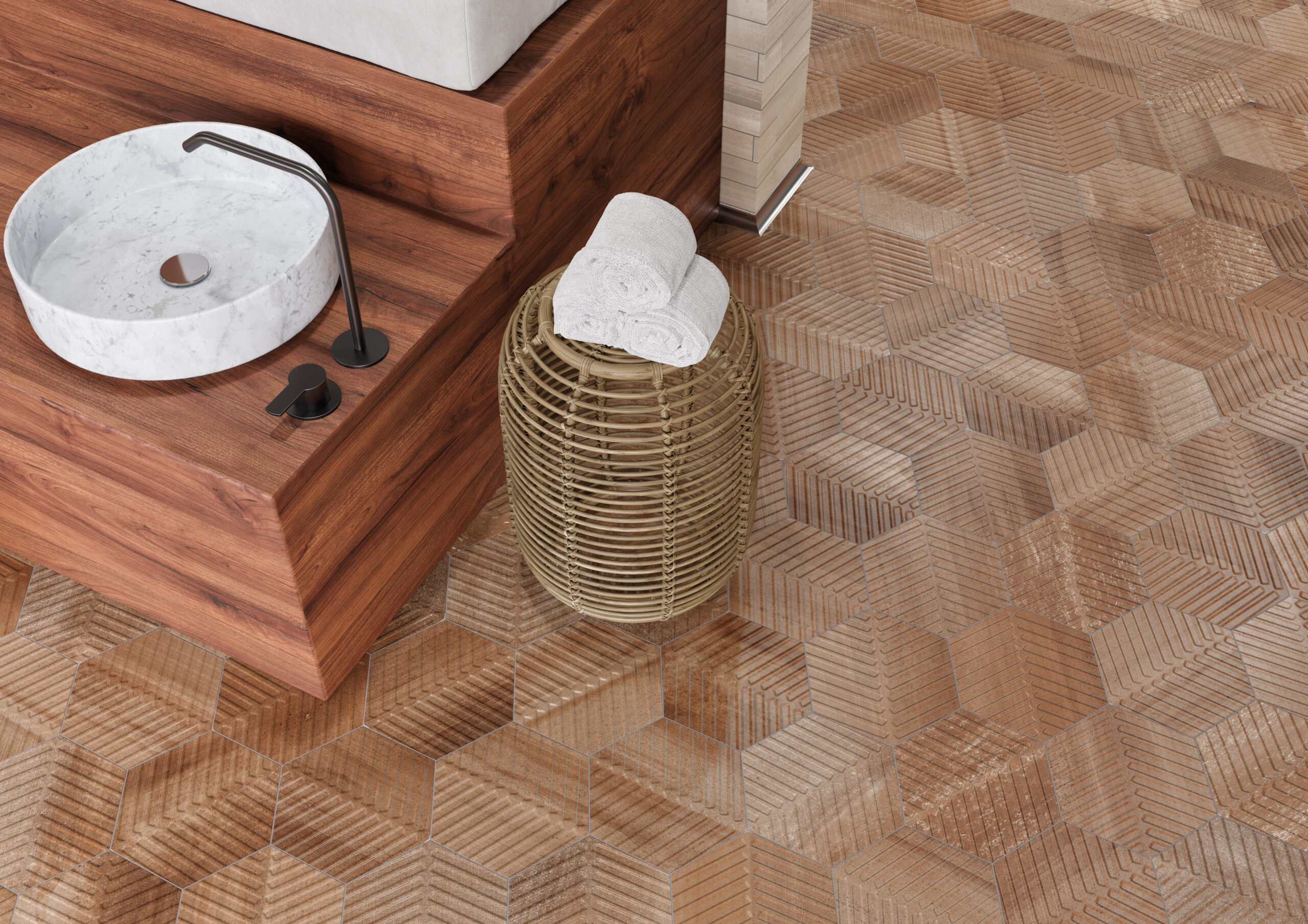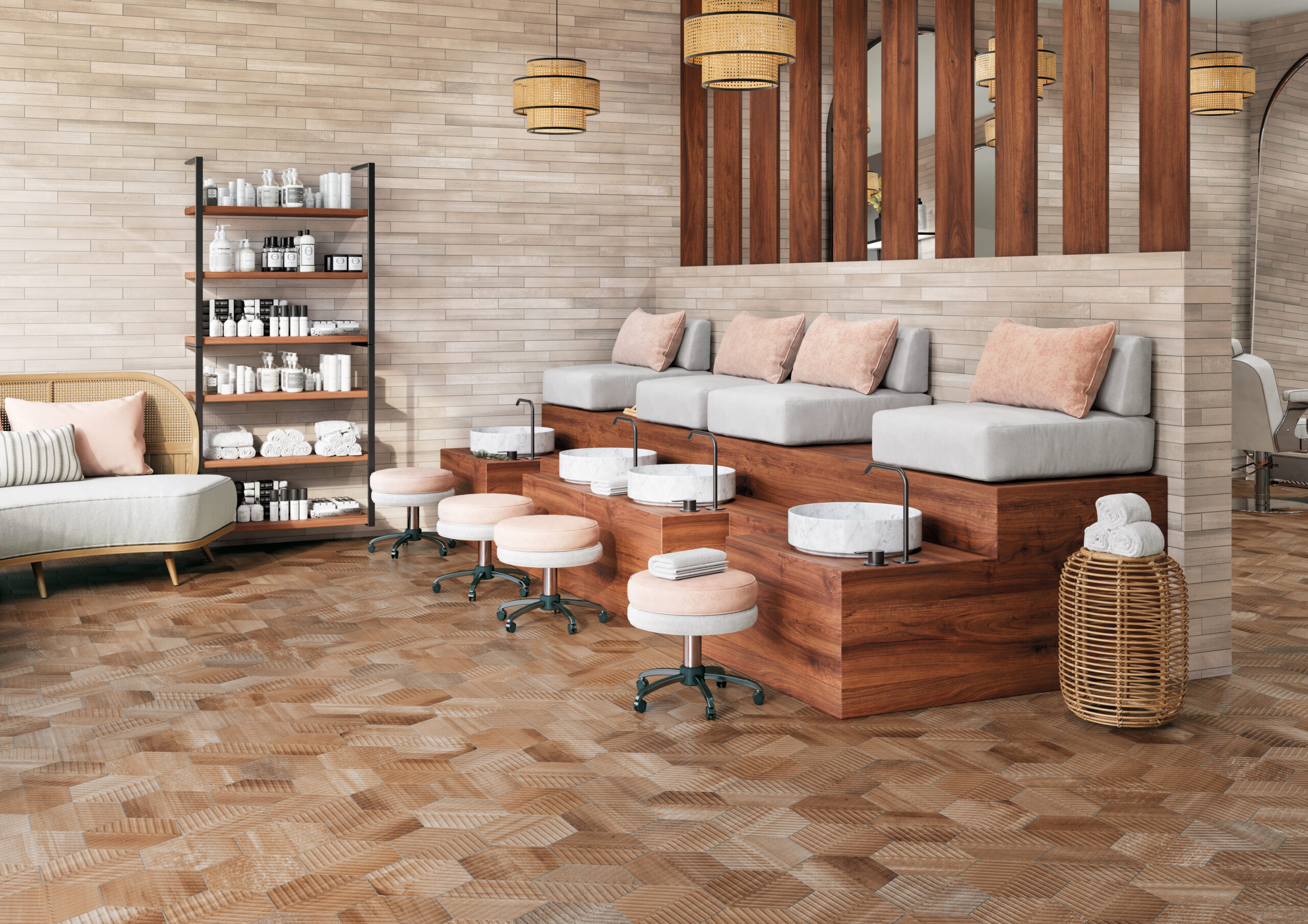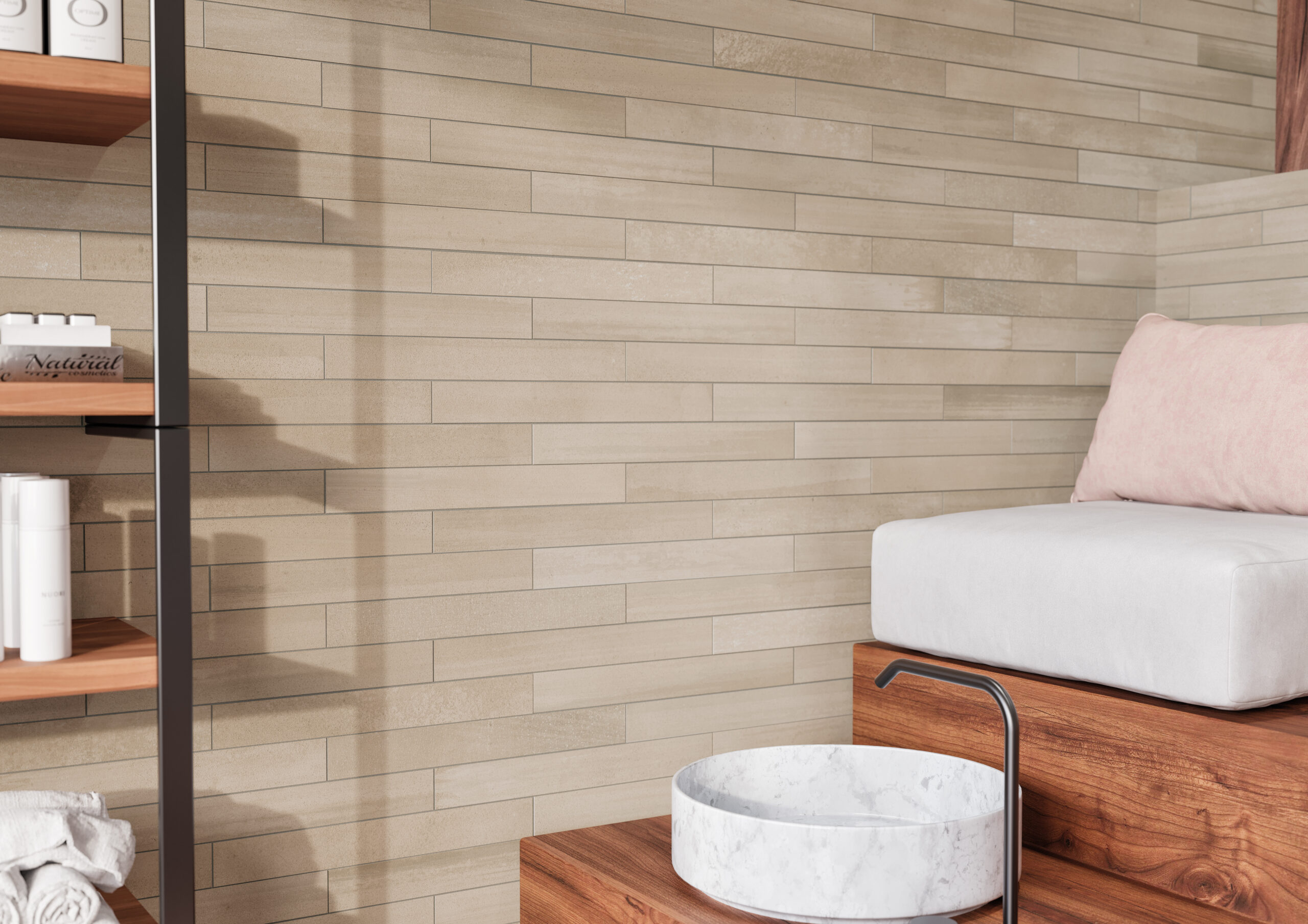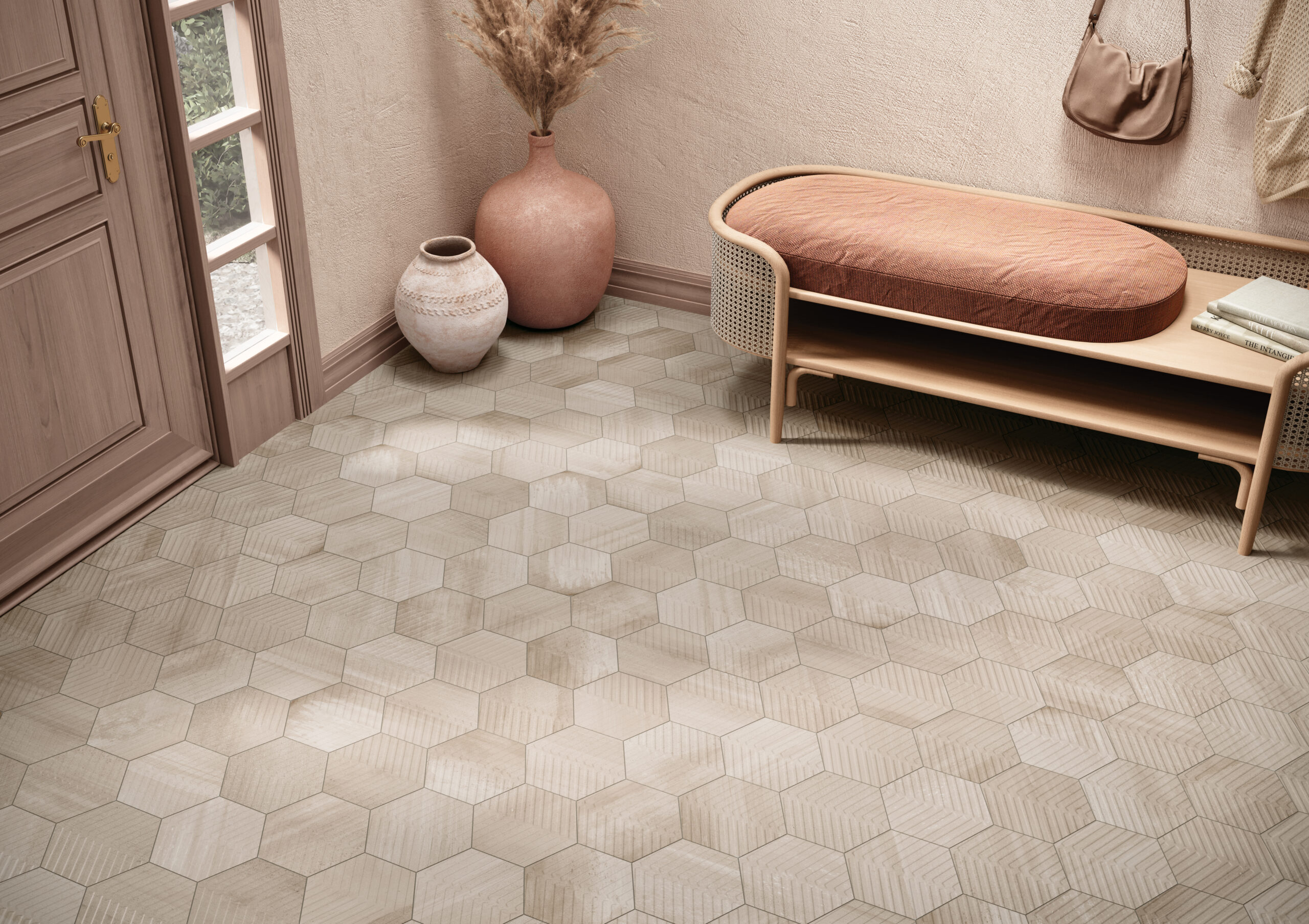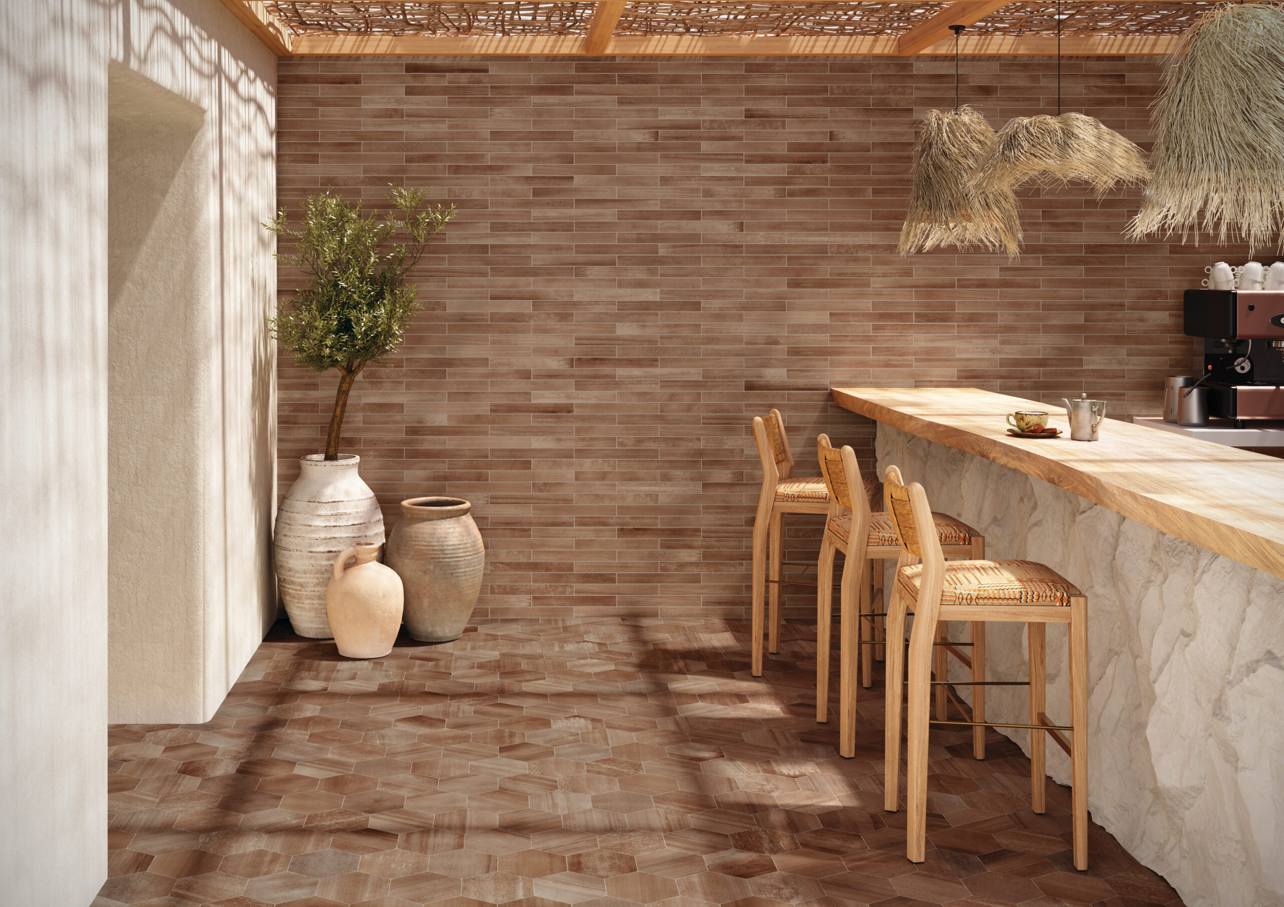 Bold brush strokes and undulating colors fluidly highlight unique textures across a variety of shapes and sizes for both floors and walls. For interior floors, all walls, and water lines, two 8" hexagon formats and a unique 2"x16" porcelain tiles bring visual texture to contemporary interiors. For walls only, Crossville offers an undulating 3"x10" ceramic brick that feels as if made by hand. Available in four clay and terracotta tones, Cotto Moderno is anything but traditional. The bohemian style and artisanal make up of each unique tile bring nature's energy to your vision.