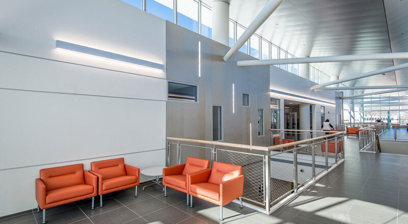 Available in a wide variety of colors, patterns, and textures, wall tile offers endless possibilities for creating engaging and inspiring spaces that reflect school spirit or enhance learning environments. Wall tiles can also be used strategically to enhance wayfinding and add character to a school, guiding students and visitors through the space with visual cues.