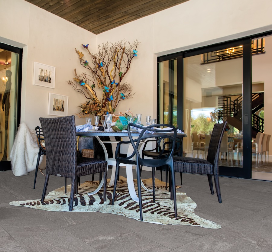 Creating seamless indoor-outdoor transitions with matching interior and exterior tiles is a growing trend that looks like it’s not going anywhere anytime soon. When integrated into designs leading to an outdoor kitchen, patio, or pool deck, this idea of bringing the outside in or vice versa fosters a contemporary and unified ambiance, effectively giving the impression of a larger space.